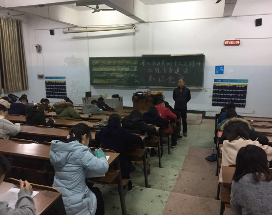 此次竞赛的主题是深入学习贯彻十九大精神,加强自身建设。考查内容有党的十九大传达的精神、党章、党规、党的基础知识以及师生党员结合自身实际谈如何在教风建设、学风建设中发挥先锋模范带头作用。在竞赛过程中,无论是身处化工楼317的教师党员还是身处一教410的学生党员,均积极认真的对待。他们在考场上的奋笔无不印刻出对党和国家的敬重与热爱。