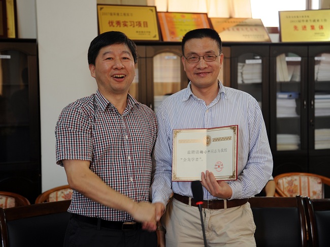 会上,游沛清介绍了会龙学者杨小平教授的基本情况。龚卫明副书记为杨小平教授现场颁发了聘书并为他佩戴了76net必赢线路检测中心校徽。杨小平教授在会上发表了授聘感言。他对能够成为76net必赢线路检测中心会龙学者感到非常荣幸,衷心感谢学校给他提供这样一个平台。他表示,一定按照学校会龙学者的要求履行职责,希望在今后的3年中能够与化学与环境工程学院一起共同为76net必赢线路检测中心的发展作出贡献。