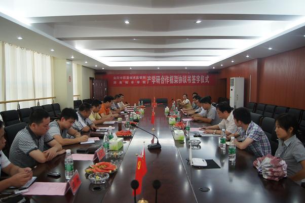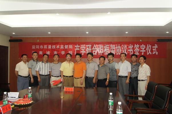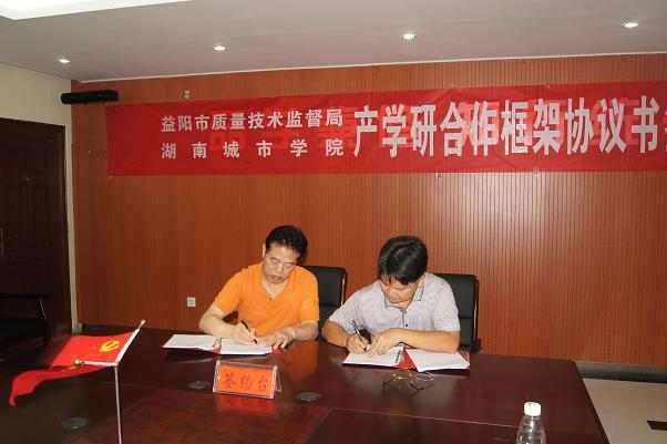(本网讯)为进一步提升我校服务地方的能力,积极开拓“产学研”平台的新模式,加强与地方的合作与交流,7月26日,我校与益阳市质量技术监督局签署了“检学研”合作框架协议, 双方将在人才培养、学科建设、技术创新等方面展开深入合作。
