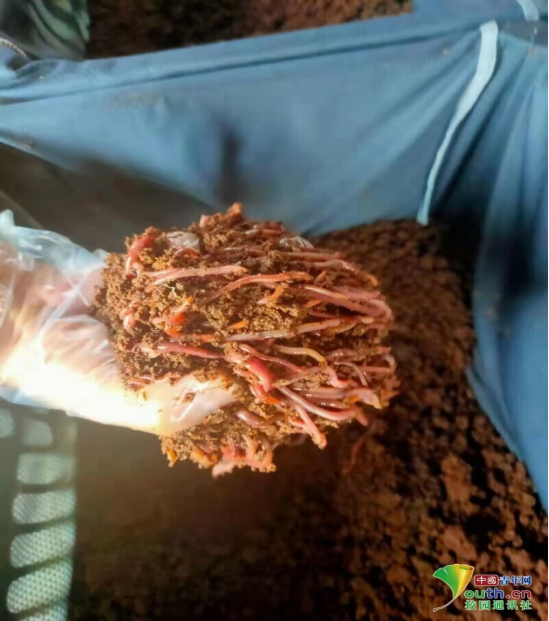 图为村民养殖的蚯蚓 中国青年网通讯员 周道 摄