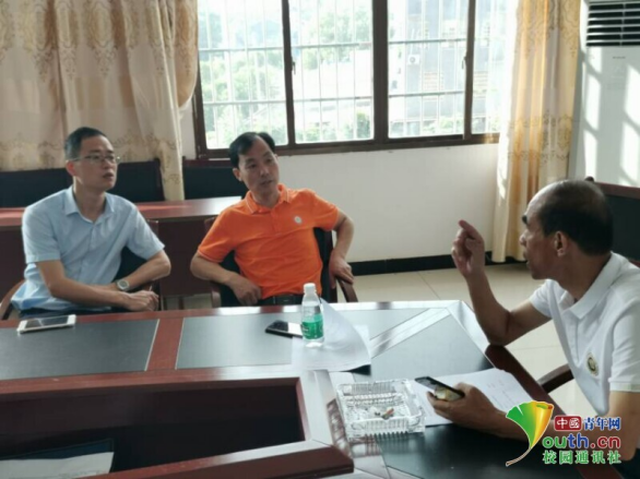 图为调研团队与老村干部交流种植水稻的问题 中国青年网通讯员 周道 摄