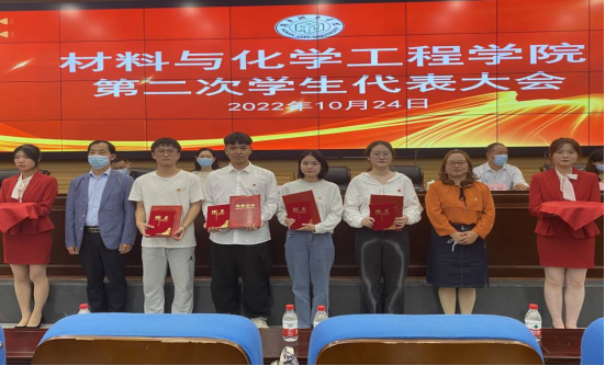 校学生会主席杨顺在会上发言,充分肯定学院学生会过去一年工作取得的成效,期待院学生会进一步加强学院学生会交流联系,为学校团学工作改革创新做出贡献。院学生团委副书记蔡欣怡代表第一届团委学生会作工作总结报告,对思想引领、学风建设、宿舍管理、心理健康、校园文化、创新创业和学生会自身建设等工作做了全面总结,肯定成绩并指出存在的问题,同时提出今后工作的努力方向。陈艳姣老师宣布材化院优秀院干、班干先进个人表彰名单,与会领导老师为上一届学生干部、团学工作优秀个人以及22级助班颁发了聘书和荣誉证书,以表达对他们工作的肯定。