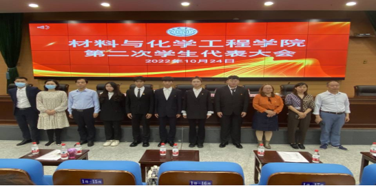 凝聚青春力量,建设和谐校园。2022年10月24日晚19:00,材化院第二次学生代表大会在图书馆报告厅举行。院党委副书记张清华、团委书记田雪萍、专职组织员陈艳姣、正处级兼职辅导员熊文高、学生第二党支部书记晏小波、专职心理辅导员潘赛出席会议,校学生会主席杨顺、建规院、土木院、信电院、管理学院团委副书记、学生会主席、副主席代表、学院第一届主席团成员与来自全院191名学生代表一同参加此次会议。