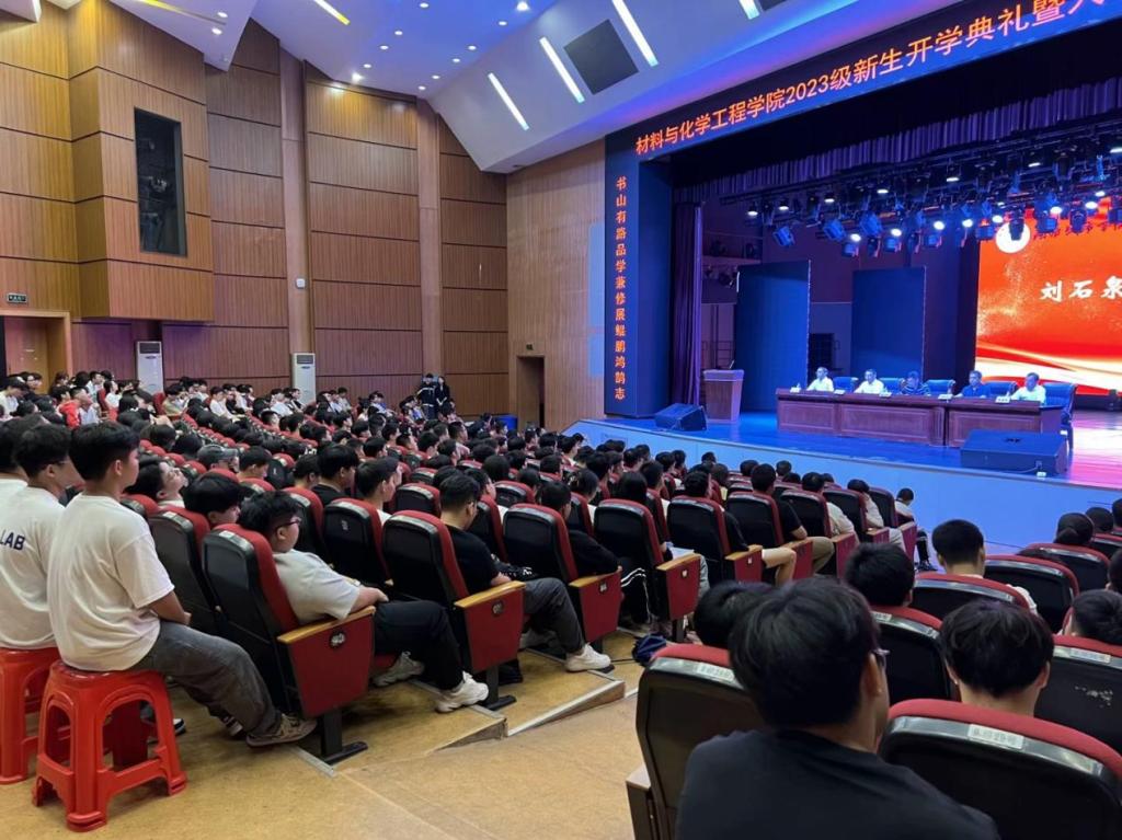 在庄严热烈的国歌声中,刘石泉院长作了热情洋溢的致辞,向2023级新同学到来表示热烈的欢迎和衷心祝贺,对新生提出两点希望:一是要以修品为魂,做一个德行高尚的人;二是要以修学为本,做一个知行合一的人,希望新同学们在学院的舞台上锻炼自己、超越自己。老生代表吴姿励分享了自己四年的学习生活经历,祝愿新同学们能够在学院大家庭里以青春之我,创青春之未来!新生代表佘宗睿表示,会牢记“品学兼修、知行统一”的校训,发扬和谐上进的材化精神,四年后成为更加优秀的自己!