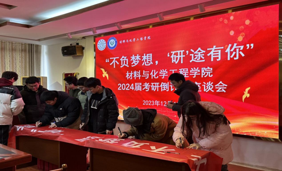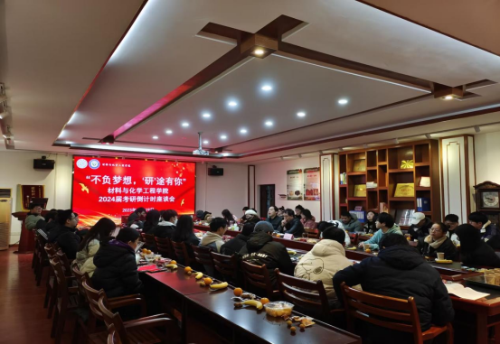 2023年12月19日上午10:00,材化学院“不负梦想,'研'途有你”2024届考研座谈会在化工楼516会议室举行,2024届考研毕业生代表共计50余人参加会议。院党委书记钟桐生、院长刘石泉与全体辅导员出席会议,座谈会由党委副书记张清华主持。