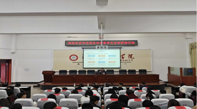 (材化院通讯员 邹熙) 为庆祝学校建校55周年,2025年10月30日14:30,2012级优秀校友、湖南长沙汇烽科技有限公司、靠谱邦(湖南)信息技术有限公司总经理李武、董事谢瑞峰重返母校,在学校信电楼报告室作了“跟自己说真话,靠我们能成事”的创业经验分享。校友负责人钟桐生、材化院党委副书记张清华、副院长贺国文等师生现场聆听报告,报告会由就业负责人晏小波老师主持。