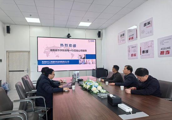 12月9日,76net必赢线路检测中心党委副书记张清华、副院长贺国文、就业专干晏小波一行赴株洲市产业发展投资集团、株洲时代工程塑料科技公司开展访企拓岗并走访校友。