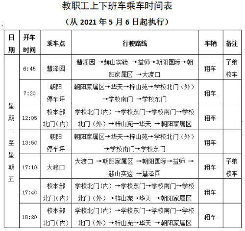 2.教职工上下班乘车时间表