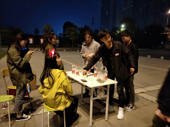 此次活动以学校西门为起终点,途径南门东门,南门和东门分别设有“‘豆’你开心”以及“爱在心,口难开”两个游戏环节。活动开始之前,工作人员为参赛选手讲解夜跑规则:参赛选手两人为一组夜跑,每人手上都带有属于自己队伍颜色的荧光棒,通过两个游戏点第一组到达终点的参赛队伍将获得丰厚的奖品。活动开始后每一组参赛选手都奋勇争夺第一名,本次活动吸引了学校200余名同学参与,到达游戏点后每位参赛选手都非常开心的完成游戏任务,现场充满着欢声笑语。