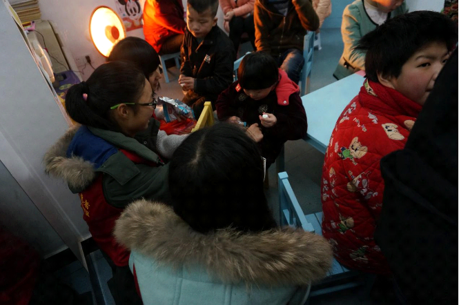 表演结束后志愿者向孩子们发放礼物,一起玩耍。很快饭点的时间到了,为了不耽误孩子们的晚餐时间,合影以后,便与孩子们约定下次的时间,结束了本次的拜访活动。