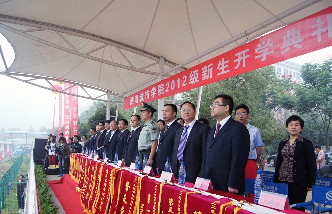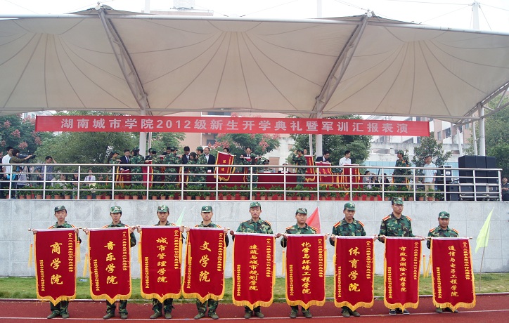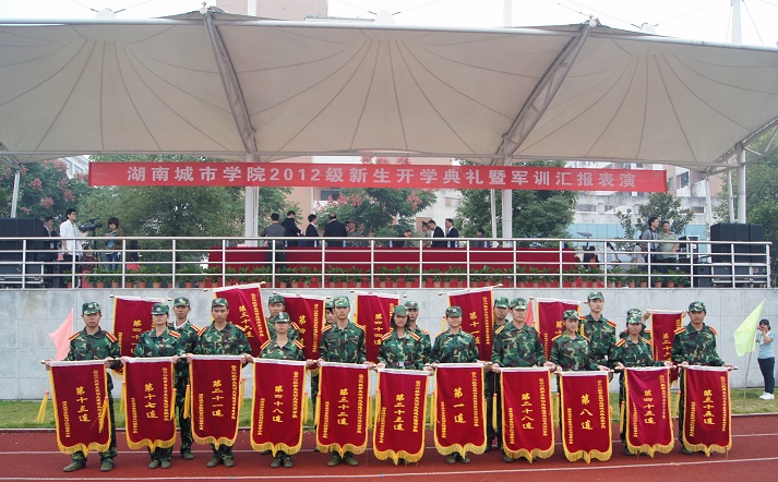 2012年9月24日上午,伴着蒙蒙细雨,76net必赢线路检测中心迎来了2012级新生开学典礼暨军训汇报表演,校领导赵运林、李建华、孟昭武、严曙光、汤放华、范志超、丁亮中、郑卫民、杨斌、刘辉煌、曹太康,省军区司令部参谋张德辉少校以及学校各部门负责人、全体教官及2012级新生参加了典礼。典礼由孟昭武副校长主持。