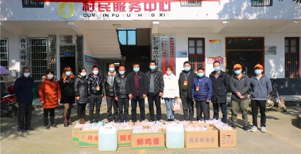 图2与当地其他企业一起为南竹山村委捐赠抗疫物资(右一)