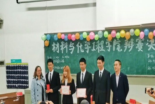 最终, 2008101班、2008301班、2008301班、2008503班四支代表队脱颖而出入围决赛,11月14日晚7点于第一教学楼201教室“大烧杯”决赛正式拉开帷幕。到场的评委嘉宾有材化院院团委老师田雪萍老师,院党组织委员张劲博士,学生团委副书记汪嘉伟,辩论队队长梁淼以及辩论队优秀辩手黎丽君、曾佳明、黄旻潇。