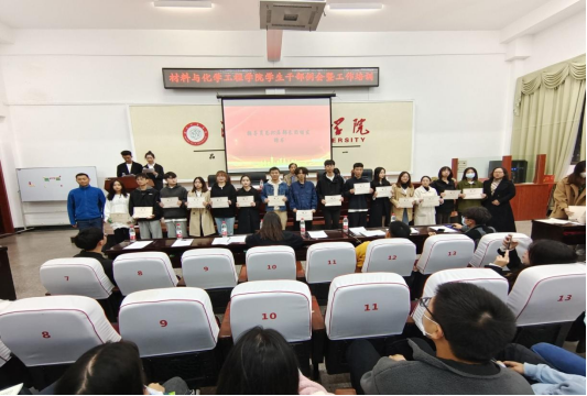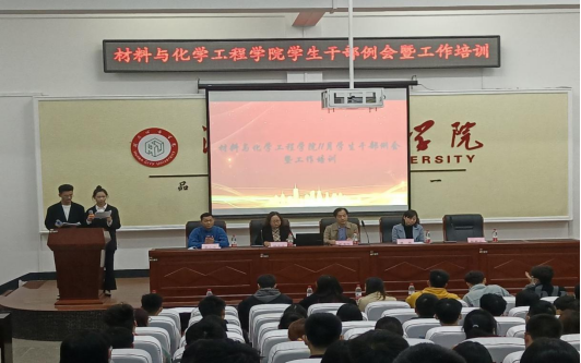 会前,张清华书记和各位辅导员分别为20届主席团、20届部长团、21届助班颁发聘书。之后,院学生会副主席樊辉对校运会做工作动员布置;院学生会学风建设部部长朱慧颖、院学生会宿管部部长张梦菲分别上台,就近期学风建设、宿舍管理工作情况进行总结发言。班级代表2021级刘新结合自己工作经历为新生干部们日后的工作分享了经验;院学生会主席蔡金廷作工作总结发言,对材化院学生会前段时间工作进行总结,指出团委学生会工作中存在的问题,对学生会今后工作进行强调。