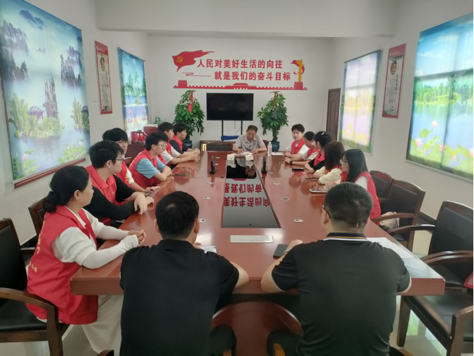 当地村委书记祝中良、镇级巡查员喻丹及各网格长张晶、樊妮、夏五兵同志热情接待团队志愿者们,随后开展座谈会,共同部署一天的活动流程,确保每项服务工作精准高效地进行。