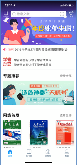 如果您想了解疫情的最新研究成果,不妨定制一个“冠状病毒”专题。只需点击首页下方的“图书馆”,再点击页面上的“+号按钮,选择“主题”定制,在检索框中输入“冠状病毒”点击“定制”按钮即可完成。每日将有最新的相关文献成果推送到您的首页(如图4所示)。