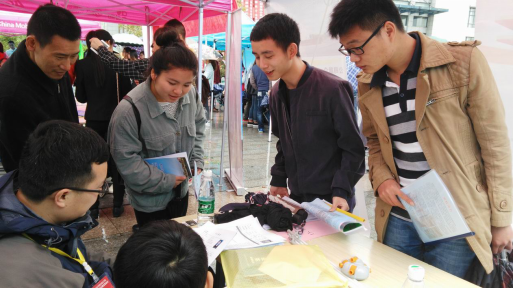 现场人潮涌动,各位志愿者们也都在坚守自己的岗位,帮助同学们找到企业所在位置,维持现场的秩序,并搭建帐篷等。毕业生们早早来到现场,了解企业信息,为寻找心仪的岗位做准备。大家都积极地同各企业负责人进行交流,全方位地了解市场信息,并通过对自己实际情况的分析,向适合自己的企业投出简历。有一位同学在填写平安保险意向书时对于自己理想工资表示犹豫,他们负责人说:“你填写的数额则代表了你的价值,是你对自己的价值的认知”。每个人能力不同,适合自己的才是最好的。对于化环院的同学来说,广东金甲化工、湖南中财化学建材有限公司等企业成为了首选,来自化学工程与工艺、环境工程、高分子材料和生物工程专业的学生也都找到了自己理想的公司,应聘者也都趋向于大公司,小企业则略显冷清。应聘过程中,除了个人的外在形象,学分绩点也成了各企业关注的焦点,因为这也是学生综合能力的体现。本次供需见面会趋向于高层次的用人单位、多样性的地域分布,为2016届毕业生提供了充足、高质量的就业机会。