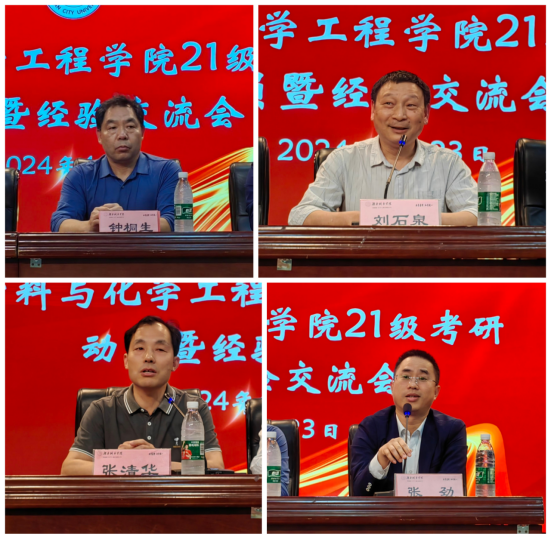 会上,刘石泉院长就当前就业形势、怎样提升自我发展、正确认识考研的意义进行了动员讲话,希望同学们能够根据自身情况,明确目标,确定好方向,不断努力,实现自我价值。张劲副院长从报考、复试、调剂等方面给大家做了全方面的指导,鼓励大家要多参加各类学科竞赛,给成功考研增添筹码。张清华副书记通报了2024年我院目前考研情况,希望2021级学生传承好材化院考研优良传统,正确处理好考研与学业的关系以及要做好合理科学的安排,注重学习方式方法,提高备考效率。2108302班王婷同学代表21级考研同学发言,她表示“考研之路虽然辛苦,但我们只要坚定信念,勇往直前,就一定能够到达梦想的彼岸,鼓励大家一起为梦想而努力,为未来而奋斗!”随后钟桐生书记指出:考研是一条漫长而又艰辛的道路,要做好能吃苦耐劳的准备,希望全体同学要树立自信、持之以恒,做到考研路上不放弃、不掉队、不妥协,全院上下将持续在考研路上为大家保驾护航。