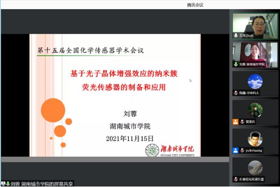2021年11月13日至15日,刘蓉博士代表学院参加了由中国仪器仪表学会分析仪器分会化学传感器专业委员会主办、化学生物传感与计量学国家重点实验室和湖南大学化学化工学院承办的“第十五届全国化学传感器学术会议”。本次大会的主题是“化学生物传感新时代”,鉴于疫情防控原因,本次会议采取了线上形式举行。在大会开幕式上,湖南大学蒋健晖副校长致欢迎辞并宣布年会的召开,中国仪器仪表学会分析仪器分会常务副理事长刘长宽先生、大会主席俞汝勤院士和谭蔚泓院士分别致辞。