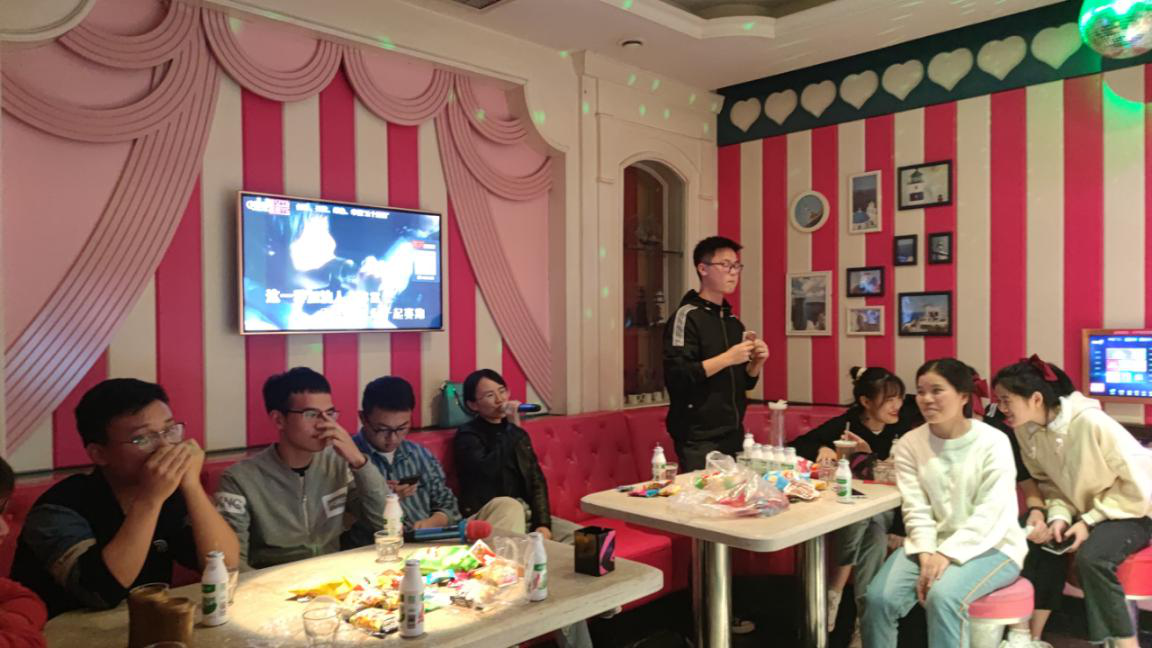 回校后大家相约去万达广场唇辣号老火锅聚餐,班干提前两天去预订时间、位置和菜品,大家围着热气腾腾的火锅谈笑风生,一边享受着舌尖上的美味,一边分享着近期的收获和快乐,现场洋溢着热情融洽、朝气蓬勃的气氛。接着去了海乐星KTV,先是班主任林老师给我们唱了一首歌,鼓舞我们像歌词那样不忘初心,未来可期。一部分同学点了自己喜欢的歌开始沉醉其中,一部分同学玩起了有趣的游戏,包括狼人杀、真心话大冒险、谁是卧底等游戏,在游戏中活跃了自我的思维,也增进了大家的感情。活动画面可以是模糊的,记忆可以是零星的,但那片欢声笑语是永恒的,我们的情谊也是永远的。