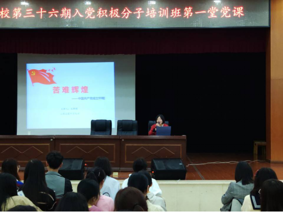 接着,马克思主义学院王锋娟老师给学员们上第一堂党课,王老师带领同学们回顾了中国共产党建党99年的苦难与辉煌的历史,采用线索式讲解法,对党史的三个重要节点与阶段层层展开,让我们对党的历史有了更深的了解。党课结束前,王老师留下了一道思考题:对于你,继续担当党的初心和使命应该怎么做?期待学员们在实践中找寻自己的答案。