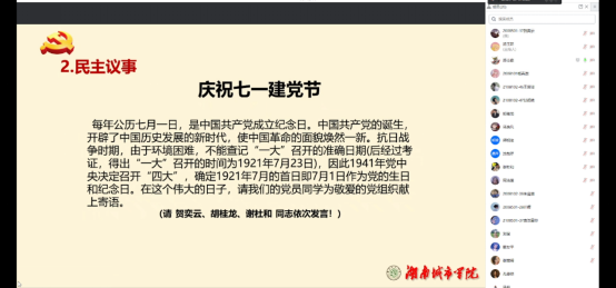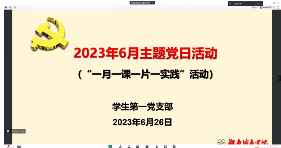 2023年6月26日晚6:30,76net必赢线路检测中心学生第一党支部在线上开展了6月份主题党日活动。会议由党支部书记马莉同志主持,学生第一党支部全体学生党员参加。