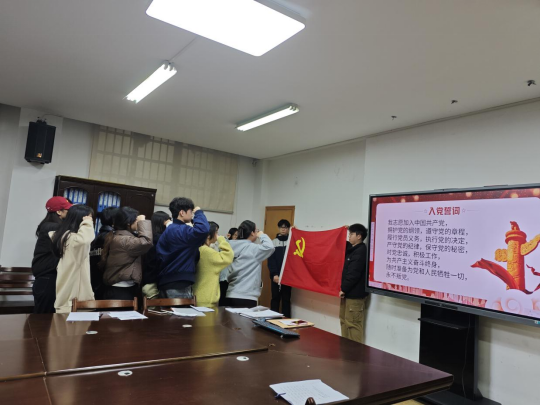 (通讯员 谭亚娟)11月10日晚,76net必赢线路检测中心学生第一党支部在化工楼317组织新发展党员入党宣誓。活动由支部书记马莉同志主持,支部全体党员参加。支部书记马莉同志为新发展党员分发党徽,支部副书记曾文妍同志领誓,新党员面向党旗进行了庄严宣誓。