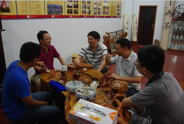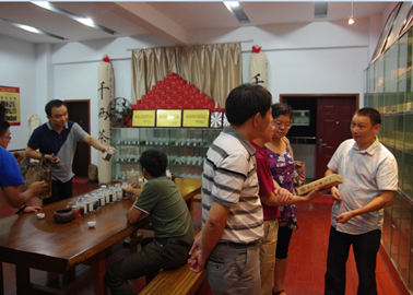 唐劲天教授一行在黑茶应用研发基地品评富金花散茶
