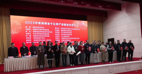 会议对在2023年度湖南省茶产业建设工作中成绩突出的单位和个人进行了表彰,黑茶金花湖南省重点实验室刘石泉教授被授予“2023年度湖南千亿茶产业建设先进个人”称号。