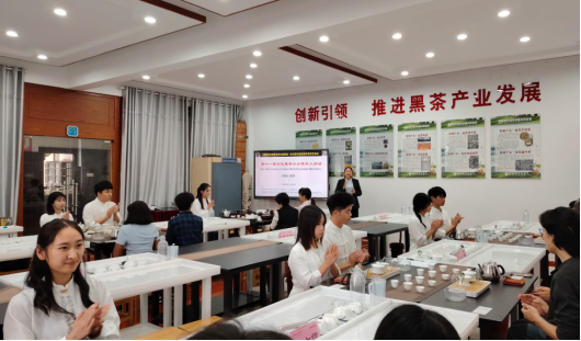 在品鉴环节结束后,各小组成员纷纷分享了自己的品茶感受和体验。国际留学生们表示,此次活动让他们对安化黑茶有了全新的认识,并深刻感受到了中国茶文化的博大精深和独特魅力,要将这种独特的茶文化带回自己的国家,与更多的人分享中国茶的魅力。活动尾声,周晓红教授代表黑茶基地向参与者们赠送了精美的金花黑茶样品,并邀请所有参与者合影留念。