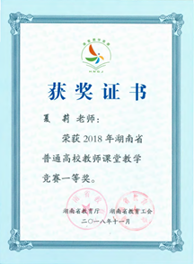 2018年,学院引进博士5人,2位老师攻读博士学位。目前学院共有专任教师53人、含双肩挑7人,其中教授12人、博士27人、在读博士11人,博士(含在读)比率达到71.7%。享受政府特殊津贴专家1人,湖南省普通高校学科带头人1人,湖南省121人才工程1人,省级青年骨干教师9人,省级教学能手4人,学校“骨干人才”和“后备人才”5人,孟维赴美国佛罗里达州立大学访学。重视教师教学能力提升,组织教学培训班,院长、省级教学能手及省学科带头人主讲,促进教师工资责任心和教学水平的提升。夏莉获湖南省普通高校课堂教学竞赛一等奖并获省级教学能手称号,李媛获校教学竞赛三等奖,贺国文获学校优秀教师称号。