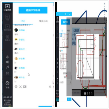 陈超老师任教的《工程制图及CAD》课程采用QQ+腾讯课堂+雨课堂的混合授课模式组织教学,既能取长补短,亦可各取所长。为使教学效果最优化,选取了雨课堂的课题教学专业性,又利用腾讯课堂的稳定性、互动性、屏幕共享功能以及录播授课等优点,方便学生课后进行回看。具体教学设计如下: