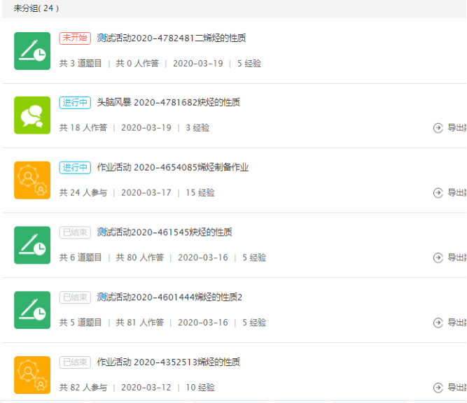 云班课中测试、作业、头脑风暴等活动截屏
