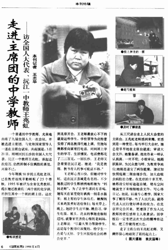 链接:走进主席的中学团教师--访全国人大代表、沅江一中教师王兆虹